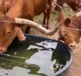 水面の反射が気になってしかたのない牛…自分の角が気になるの?(動画)