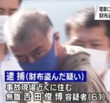 61歳無職男、目の前で電車にはねられ瀕死の男性から財布を盗んで逮捕、男性はその後死亡