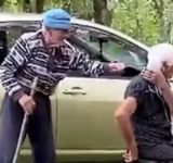 101歳のおじいちゃんが97歳のおばあちゃんに古典的なイタズラ(動画)