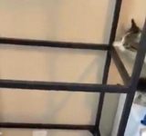 棚のガラスが無くなってると知らず…猫が派手に落っこちてしまう(動画)