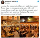 「五輪中の居酒屋は20時でも満席。クレイジーだ!」米紙記者の投稿した店内写真が物議