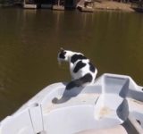 川が大好きな猫、自分からボートに乗ってジャンプ…泳ぐのも速い!(動画)