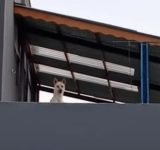 ぴょんぴょん飛び跳ねて、二階のベランダから顔を出す犬(動画)