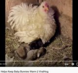 子ウサギたちを暖めるのは…ニワトリ!(動画)