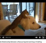 拾われたリス、拾われた犬を乗りこなす(動画)