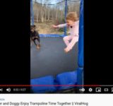 ふたりともトランポリンが大好き…小さな女の子と犬が激しく飛び跳ねる(動画)