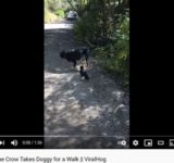 「まっすぐ歩きなさい!」犬を散歩させるカラス(動画)