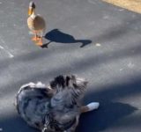 「犬が散歩に出かけると…アヒルが乗ってくる!」(動画)