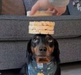 頭の上でバランスを取るのが得意な犬に…お餅を何枚乗せられる?(動画)