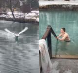縄張りの主は白鳥…池に男性が入ったらものすごい勢いで威嚇される