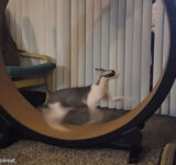 回し車で全力疾走する猫…停まるときのカッコいい動き