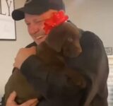 「驚きと喜びの表情」ずっとラブラドールを飼いたがっていたパパに家族がサプライズのプレゼント