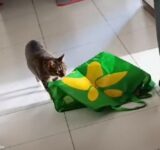 バックに潜んだ猫が…別の猫をめちゃくちゃ驚かせる(動画)