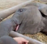 「甘えん坊の赤ちゃんゾウが手を握って離してくれないの…」(ただし鼻で)