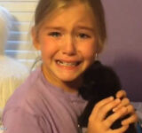 少女が念願の子猫をプレゼントされて泣き出してしまう