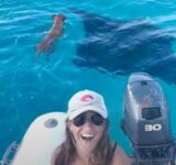 「犬が巨大マンタと一緒に泳ぎ出した…」南太平洋のフランス領ポリネシア(動画)