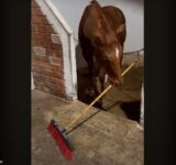 その気持ちがうれしい…掃除を手伝おうとする馬(動画)