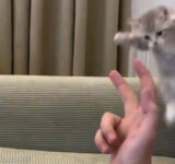 拳法使いのような格闘センスを持つ子猫と…手で対決