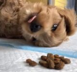 寝ころんだ姿も食べ方もキュートな犬(動画)