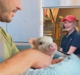 子ブタをドライブスルーに連れて行ったら…店員が大興奮(動画)
