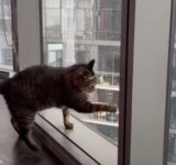 シカゴに初雪…ぬくぬくした場所から雪遊びをする猫(動画)