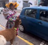 リャマをタクシーに乗せるペルーの女性…インカ帝国の首都クスコの日常(動画)