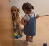 小さな女の子「ダメなんだからね!」叱られてタジタジになる犬(動画)