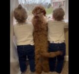 「お兄ちゃんが帰ってきた!!」心躍らせる小さな双子と犬にキュンキュンする人が続出する