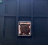 ペットドアから入ろうとする近所の猫が…叱られる(動画)