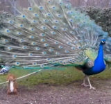 リスに自慢の羽をイタズラされたクジャク…さすがに怒る