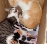 「理想的なお父さんだ…」ママ猫の育児を手伝うパパ猫(動画)