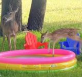 「なんてお似合いなの…」子供用プールで遊ぶ子鹿(動画)