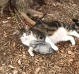 ウサギの置き物に恋してしまった猫…離れようとしない(動画)