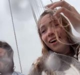 遊園地の回転ブランコ中に豪雨に見舞われ…悲鳴を上げる女性客(動画)