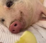 スヤスヤ眠るブタの鼻先に好物のリンゴを置いてみたら…どうなる?(動画)