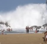 巨大な大波が押し寄せても…みんな平然としているプエルトリコのビーチ