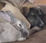 寄り添って眠るウサギと犬…仲良しでラブリーな関係(動画)