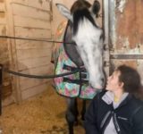 首をフリフリして大好きなお姉さんにキスしてくる馬(動画)