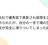 会社で優秀賞で表彰され感想を求められたが、自分の一言で場の空気が完全に凍りついてしまった話
