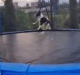 トランポリンで遊んでいた犬が…勢い余って落ちちゃった(動画)