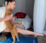 これはモチベーションが上がる…女性のストレッチを手伝ってくれる猫(動画)
