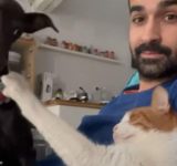 猫と犬がパンチ対決…飼い主さんの隣を争う(動画)