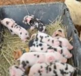ゆらゆらと荷車で運ばれる8匹の子ブタたち(動画)