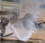 「ノーーー、もう無理!」軍人女性が洗車していたらホースが激しく暴れる(動画)