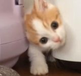 子猫「あれ、出られニャい…」すき間にハマって立ち往生する(動画)
