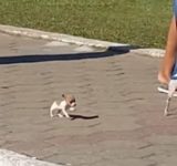 豆粒みたいな赤ちゃん犬を散歩させてみたら…ゴムマリのような走り(動画)