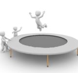 トランポリンを使った馬上で弓矢をひく「騎射」の訓練の様子…上半身だけまったくブレない