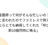 看護師って何がそんな忙しいの?と言われたのでファミレスで例えたらとても納得してくれた「呼び鈴10個同時に鳴る」
