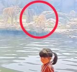 小さな女の子の背後に跳びかかる虎…ガラス越しでも迫力がすさまじい!(動画)