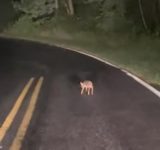 生まれたての子鹿が道路に横たわっていた…ママ鹿に導かれるまで見守る(動画)